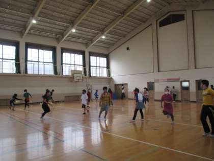 1年生との遊びの計画を立てています。今日は,前回試していない2つの遊びを実験してみました。写真はしっぽとりの様子です。課題を見つけ,1年生との遊びの前に修正してより良いものにしたいと思います。