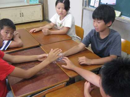 理科で「とじこめた空気や水」の学習をしています。