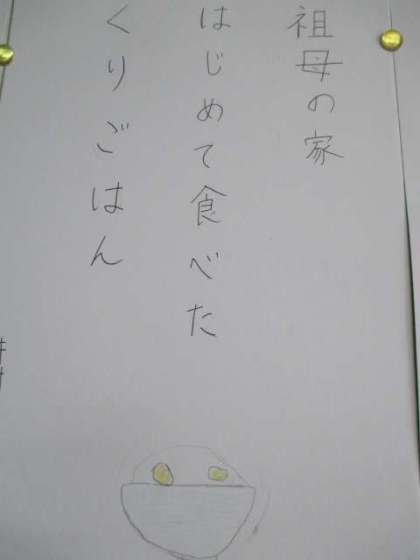 教室の後ろに子どもたちがつくった秋の俳句・短歌が掲示されています。どれも秋を感じられるすてきな作品です。
