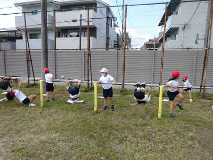 前回は雨がふったので,今日は2回目の鉄ぼう学習でした。