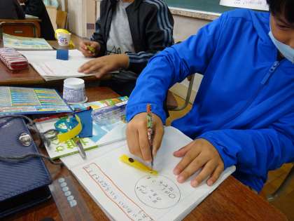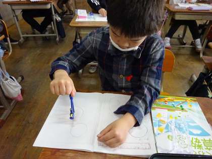 画びょうと紙テープを使うと,きれいにまるい形をかくことができることに気がつきました!