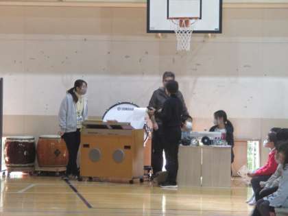 体育館の外で受付をする教職員,職員室で待機する教職員,給食を作る給食調理員も学習発表会を成功させようと一生懸命でした。学習発表会が終わってからの教職員の打ち合わせでは,満足そうな教職員の表情がうれしい校長先生でした。