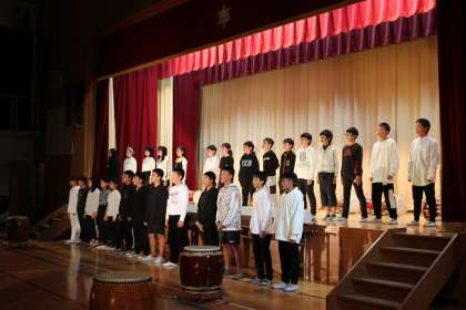 コリアみんぞくの楽器演奏から,コリアのチャンゴと日本の和太鼓とのコラボレーション,そして最後は体育参観の退場曲としても使用した「糸」の合唱。本番はどれも今までで最高のできでした。目頭が熱くなったのは,私だけではないはずです。この特例だらけの学習発表会で,歌詞の通り,人と人とのつながりを体現してくれたと思います。