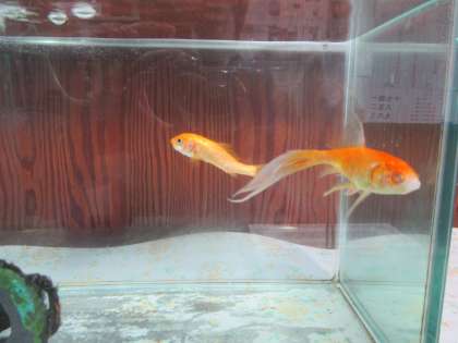 右側の金魚は「もみじ」左側の金魚は「あわじ」です。応募してくれたことがうれしかったです。まだまだ募集をしています。もし応募がなければこれで決定しようと思います。