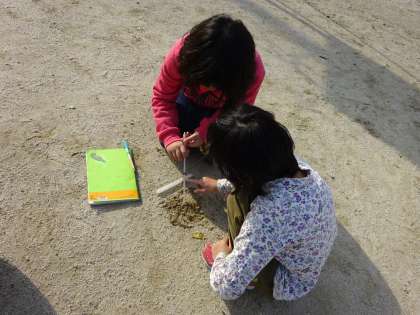 先週予想をした,日なたと日かげの地面の様子をたしかめました。