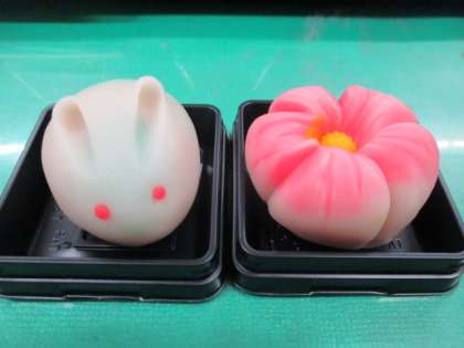 子どもたちがデザインした和菓子。和菓子屋の葵餅さんが形にしてくださいました。とてもすてきで子どもたちは興奮した様子で和菓子を見つめていました。