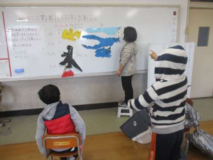 作った魚に点数をつけて,釣った魚の数を数えたり得点を計算したりしました。