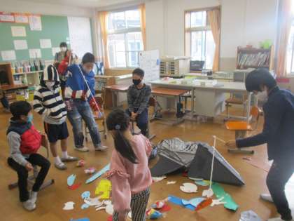 魚つりの魚は図工の時間に子どもたちが作りました。