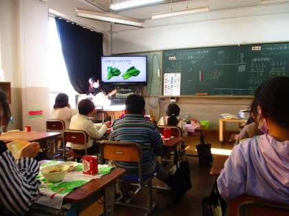 今日の給食時間の給食クイズは,小松菜についてでした。見た目は,そっくりな小松菜とほうれん草ですが,骨や歯をじょうぶにするカルシウムがより多く含まれているのは,小松菜です!3年生の教室では,「へぇ〜!!」とおどろきの声が聞こえていました。