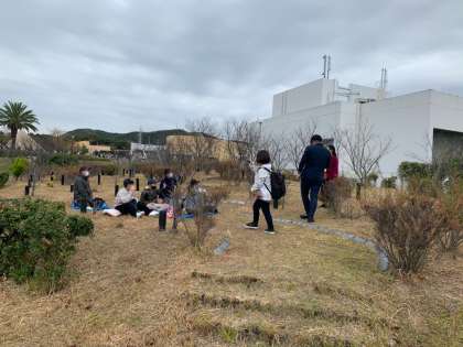 北淡町の震災記念館に到着しました。まずはお弁当です。美味しさそうにお弁当を食べている子どもたち。その様子を写真に収める先生たち。修学旅行を楽しんでいます。