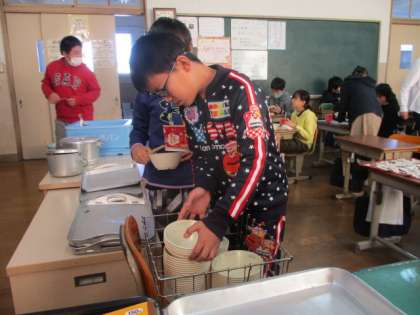 給食が食べ終わると友だちの食器を集めるのが子どもたちの良い習慣になってきました。お家でもこのよい習慣をいかしてほしいと考えています。
