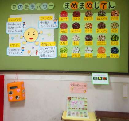 給食にもたくさん登場する大豆には,たくさんのパワーがあります!この間,給食に大豆が出たときに,1年生が「大豆にはパワーがたくさんあるってかいてあったから,がんばる!」といって大豆を食べている姿もありました。