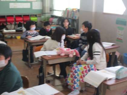 国語科の学習では「プラタナスの木」という物語文を読んでいます。場面ごとの登場人物の心情について班で意見を出し合っています。多様な考え方に触れていく事で自分の考えもさらに深めていけたらと思います。