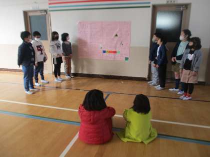 ドリーム学習で取り組んでいた福祉施設についての学習をまとめたものを3年生や施設の方に向けて発表しました。話を聞いたことや調べたことをもとにポスターを作成し,頑張って伝えようとしていました。