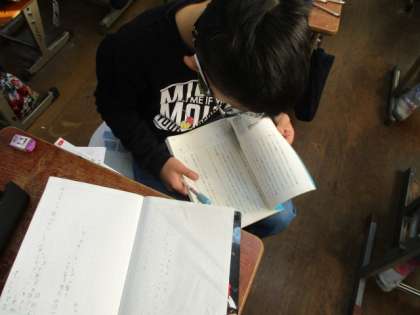 アンパンマンの勇気をいよいよまとめます。これまでに学習したノートや教科書を見返しながら今日はまとめていきました。