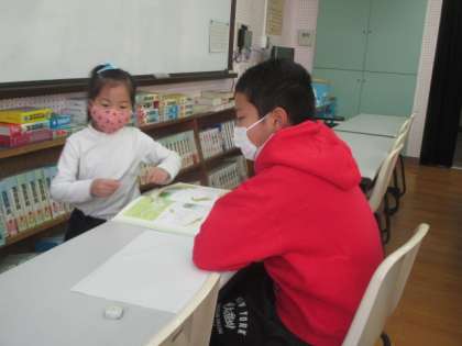 めだかとえびを育てたいという意見が出たので,どんな住みかにすれば住みやすいのかやえさは何を食べるのかを図鑑で調べました。