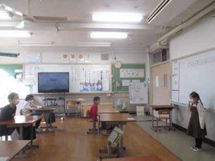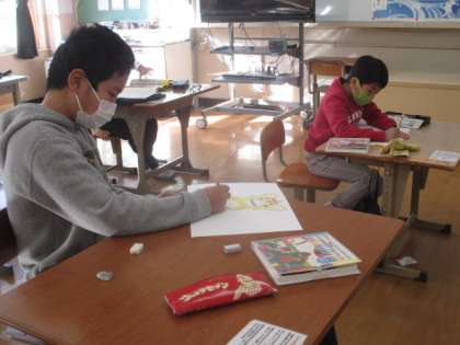 一人ひとり冬休みの出来事を発表し,絵に表しました。