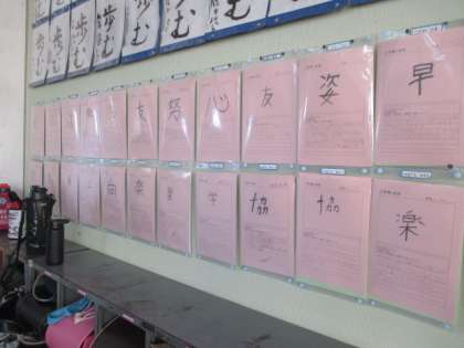 今年がんばりたいことを漢字1字で表しました。それぞれ自分を見つめ,成長するための目標にぴったりな漢字を選ぶことができていました。