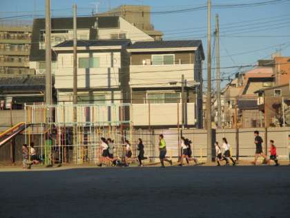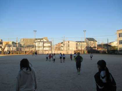 年明け1回目の陸上部は先生方の参加もたくさん!やはり冬休み,運動不足な人が多かったようです。先生対子どもたちで鬼ごっこをした後,運動場1周ごとにゆっくり・ダッシュと交互で1km分走りました。ダッシュは全力で走るため先生たちもくたくたに…。子どもたちの体力のすばらしさをほめてもらいました。