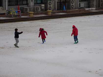 今朝は,運動場に雪がつもっていました。