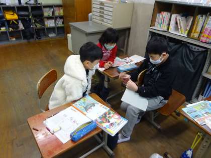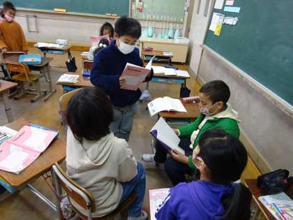 すきなものをえらんだり,しょうかいされている くふうを使ってつくったりした詩を,読み合いました。