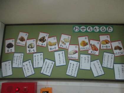 1月の掲示板は,「おせちかるた」です。