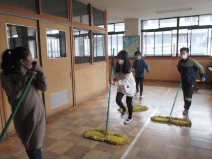今日は雪が降るほど寒い日。でも,冷たい水に負けず,廊下の冷気に負けず,そうじをがんばる5年生。がんばっています。