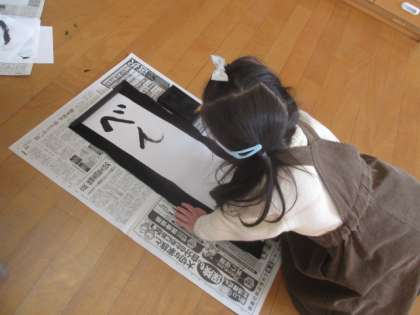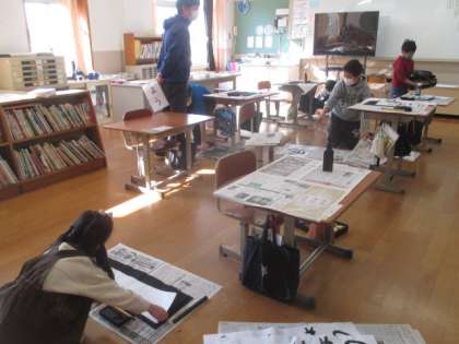 えのき学級では,中高学年は今年の目標を漢字一文字で表し,低学年はひらがなで頑張りたいことを書きました。
