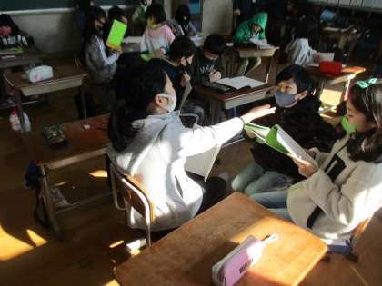 3学期初テストは理科のテストでした。テスト前には自分たちでノートや教科書から問題を出し合って確認していました。