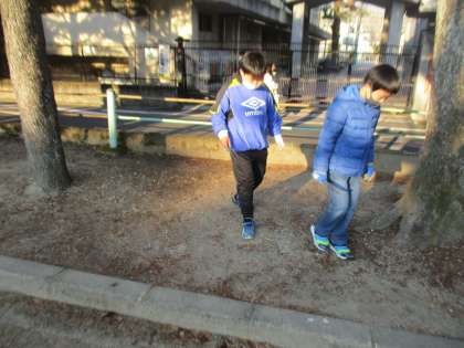 クリーンキャンペーン寒い中みんなで頑張りました。飛鳥井公園の遊具にはつららができていました。