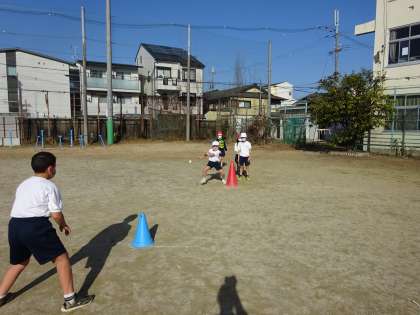 全員がはじめてだったので,ボールをどちらに投げるといいのか声をかけ合いながら,楽しんで取り組むことができました!
