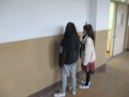 今日のクリーンキャンペーンは校舎内の壁をきれいにしました。教室や廊下の壁をこすってピカピカにしてくれていました!