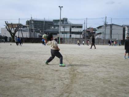 遊び係発案のみんなあそびをしました。寒い中,みんなでドッチボールをして楽しみました。