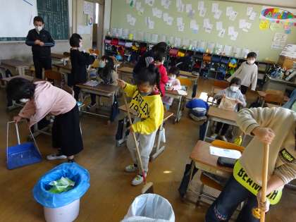 すると,自分のかたづけが終わった人が,ほうきを持って来てそうじを始めました。
