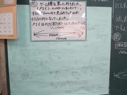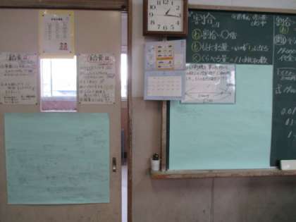 以前,ホームページでもお知らせした算数の問題を出し合う『学びの場』。一番右の写真が始めたばかりの時の様子ですが,今では,真ん中の写真を見てもらえば分かるように模造紙2枚分にもなりました。子どもたちの学び合い,良い形で続いています!