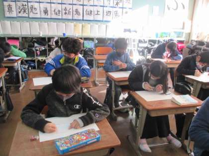 ステップアップタイムの様子です。集中して問題を解いていることが伝わってきます。今日は割合の問題です。「もとにする量」「くらべる量」「割合」の何が分かっていて何を求めるのか,小学校算数の難関ともいわれる学習ですが,子どもたちは真剣に考え前向きに取り組むことができています。