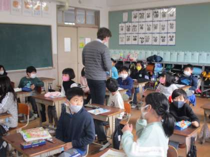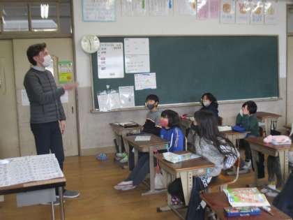 今日の外国語の先生はALTの先生が来てくれました。やっぱり子どもたちも普段の外国語の学習より前のめりになって取り組んでいました。