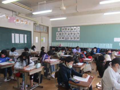 今日は音楽の聞き取りテストをしました。4年生で学習した曲がたくさん出てくる聞き取りテストでしたが,やはり学習発表会で歌ったもみじの問題は子どもたちみんなバッチリ答えていました。