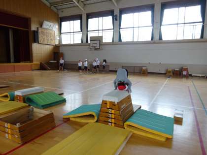 とび箱をたてにおいて,台上前転にチャレンジしました。