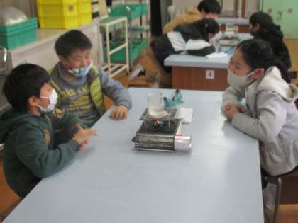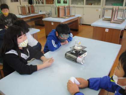 理科の学習では水の状態変化について学習を進めています。今日は実際に水を熱して沸騰したときに出てくる泡の正体を調べていきました。