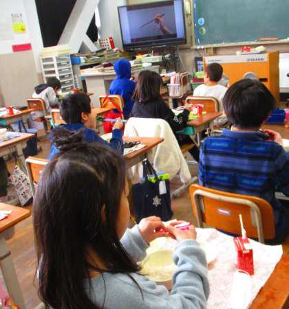 今日の給食時間のパワーポイントは,「きらいばし」や「おはしのもち方」についてでした。1年生の教室では,動画を見ながらおはしの練習をする姿が見られました。がんばり屋さんがいっぱいの養正小学校です。