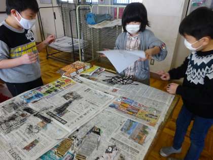 1まいの紙に,2回いんさつしたり,向きをかえたりとくふうをしてすっていました!