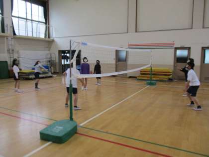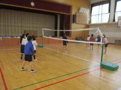 体育では今日からソフトバレーに取り組み始めました。自分たちでネットの準備から初めてさっそくゲームをしました。