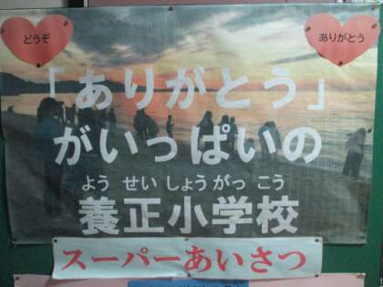 児童会のみんなどうもありがとう。校長先生はとってもうれしいです。養正小学校のみんなどうもありがとう。みんながありがとうでいっぱいにしようとがんばってくれていることがうれしいです。