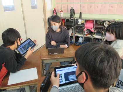 環境問題のテーマを決め,チームスをつかってグループでパワーポイントにまとめました。今日は発表会。グループの代表として,小グループ内で発表しました。画面をみせながら上手に説明する子どもたちにびっくりしました。