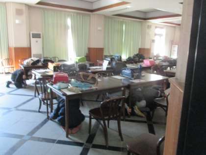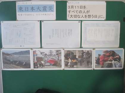 今日はすべての人が「大切な人を想う日」です。この日に合わせてシェイクアウト訓練を行いました。教職員にも子どもにも内緒でした。そして2時46分に合わせて,全員で黙とうを行いました。これからも大切にしたい日ですね。