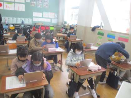 今日もGIGA端末を使った学習を行いました。簡単な機器の操作やロイロノートの使い方を練習しました。