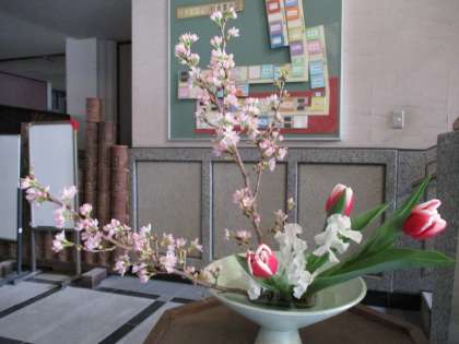 今年度最後の生け花教室でした。少しずつ暖かくなったということで「桜」「チューリップ」「スイートピー」を使ってお花をいけました。それぞれが春をイメージした花なので,出来上がりはとても春を感じさせるものになりました。