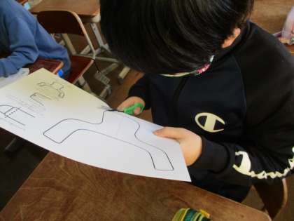 食事の時用のマスクを作り,給食時間に活用しています。飛沫を防ぎながら楽しく安全に食事することができるのがいいですね。
