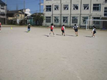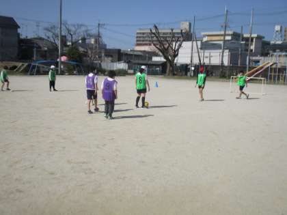 今日はさっそく練習のおかげかサッカーらしくゲームを展開できるようになってきました。パスやドリブルを駆使してたくさんのゴールが生まれていました。